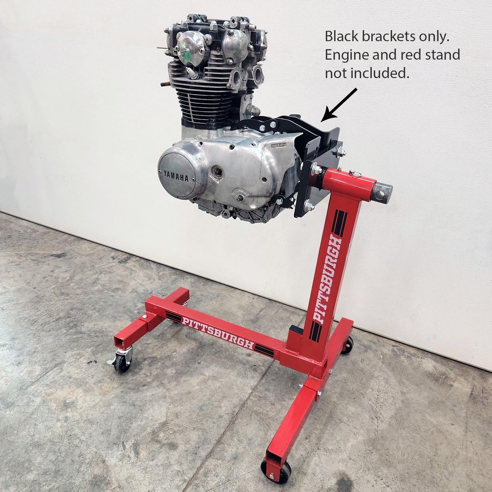 The brackets, links, and arms are powder-coated black, and it comes with all the metric hardware needed to mount your XS650 engine to a typical car engine stand. Includes left and right brackets, two lower links, two support arms with felt pads, two aluminum spacers, and metric hardware.MADE IN THE USA
