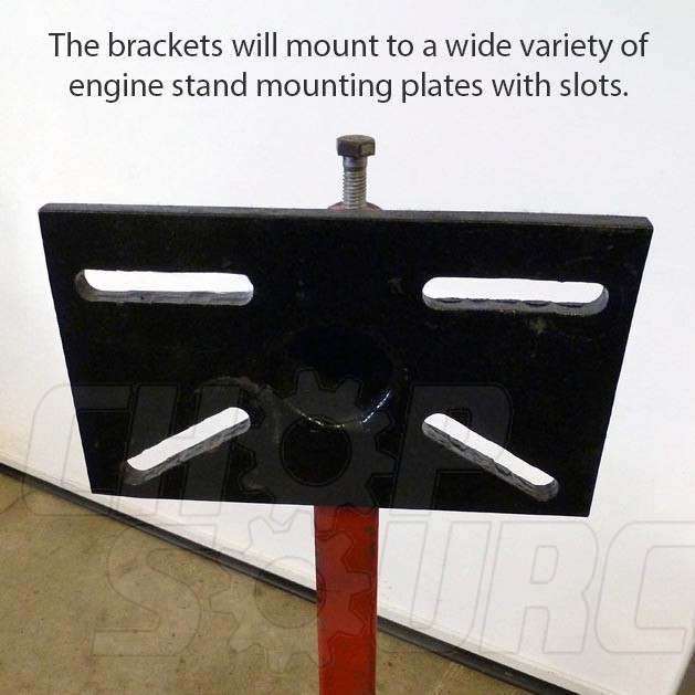 The brackets have slots and holes to ensure they'll work with almost every style of engine stand mounting plate (both slotted and the style with just 4 holes). If you are unsure if this will work with your engine stand, feel free to text or email us pictures with some measurements, and we'll do our best to help.