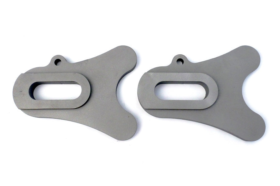 Axle plates for your chopper / hardtail project with spacer plates. The 3/16" spacer plates increase the axle plate width to 9/16". They must be welded to the axle plates. Allows for the use of stock chain adjusters on motorcycles that have wider axle plates.