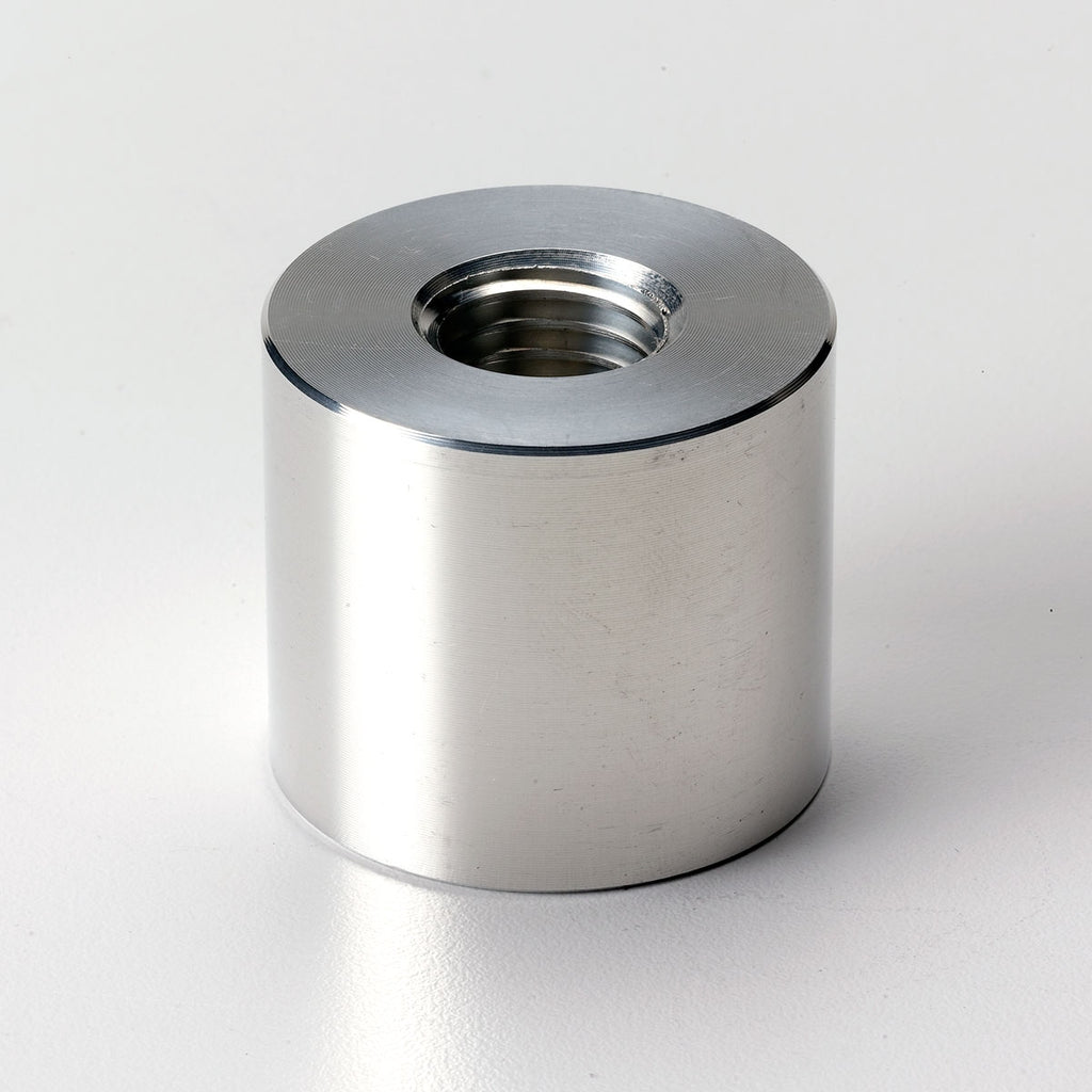 This 6061 aluminum threaded spacer comes with our Neck Fixture. If you have an older version of our Neck Fixture (sold before 11/23/18), this spacer replaces the 3/4" nut that was previously used on the top of the rod block. The large CNC-machined spacer has more surface area in contact with both the top of the rod block and with the threads of the rod to help ensure they are accurately aligned with each other. It also provides a solid base for the bottom cone. Keeping the neck as low as possible in the fixture ensures the most rigidity. If you have one of our neck fixtures sold before 11/23/18, this is a must-have upgrade.
